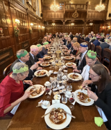 Some 32 members and their guests attended the Company Christmas lunch on 15th December. Amongst the regular attenders at these events were the Master and five Past Masters but this contingent was more than offset by a group of relatively new Members. Particular “shout outs” go to Olga Croft and Lin Wong who have become a regular pair at these events over the past couple of years. Extra special Christmas shout outs go to the group of relatively new Members who were there in force: hats off to Jason Kwan, Harriet Kemp, Alexei Samarneko, Nina George and Linda Cairney. For them it was their first Company Christmas lunch and indeed their first visit to Ironmongers’ Hall. Everybody enjoyed a convivial lunch although the paper hats got discarded quickly. Thanks to Patrick Chapman for his photo of this very enjoyable Christmas lunch. Happy Christmas one and all.